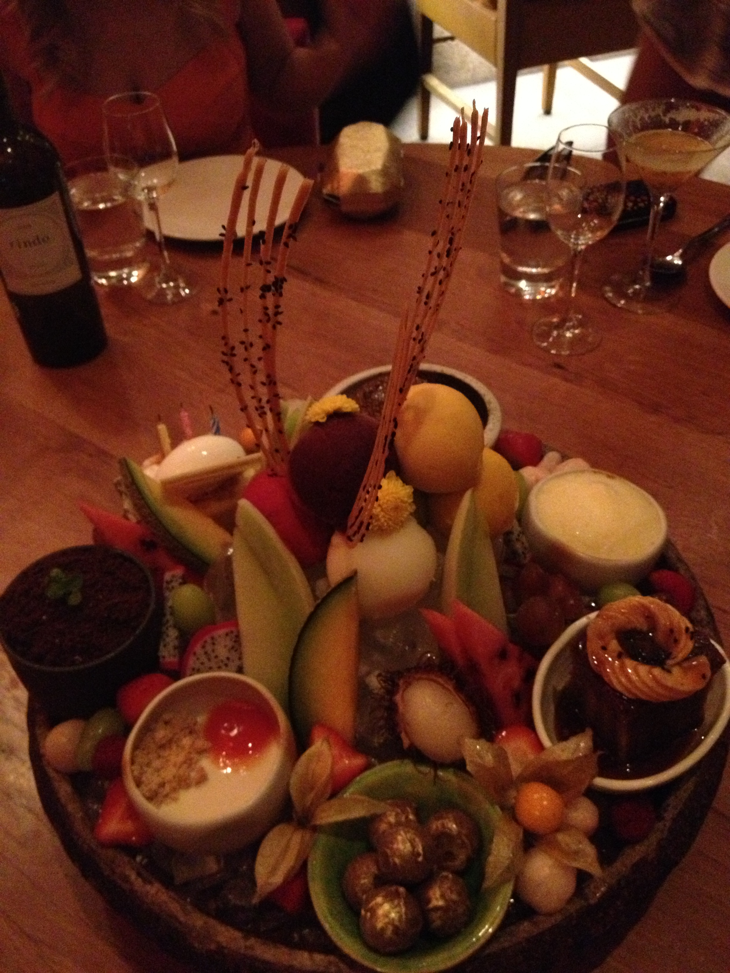 To my surprise and excitement, I received this enormous dessert platter. It contained large selection of beautifully arranged desserts and assorted fresh homemade sorbets, including their famous Zuma special chocolate cake (pairs beautifully with Port), green tea banana cake (perhaps a little more banana than I would have liked, but delicious in its own right), yuzu key lime piece (easily ands surely the best key lime pie on the planet, WOW!), their kinako cake with cocoa crumble, small chocolate truffles and perfect homemade sorbet.
