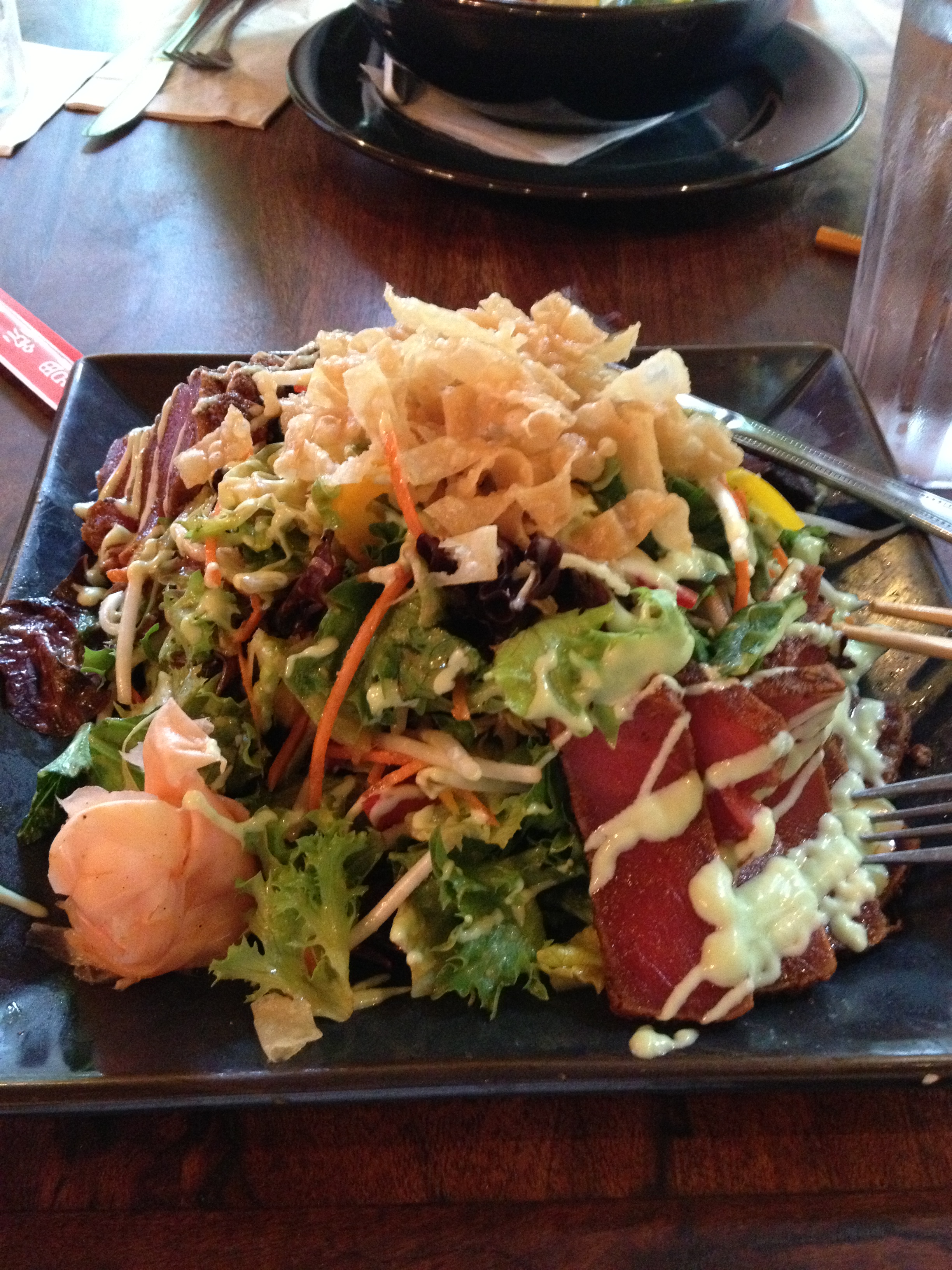 The ahi tuna salad was also very good in its own right. On a very large bed of mixed greens, with blackened and seared ahi tuna. They drizzled on top some spicy wasabi aioli, and tossed in a delicious ginger dressing, topped with crispy wonton strips.