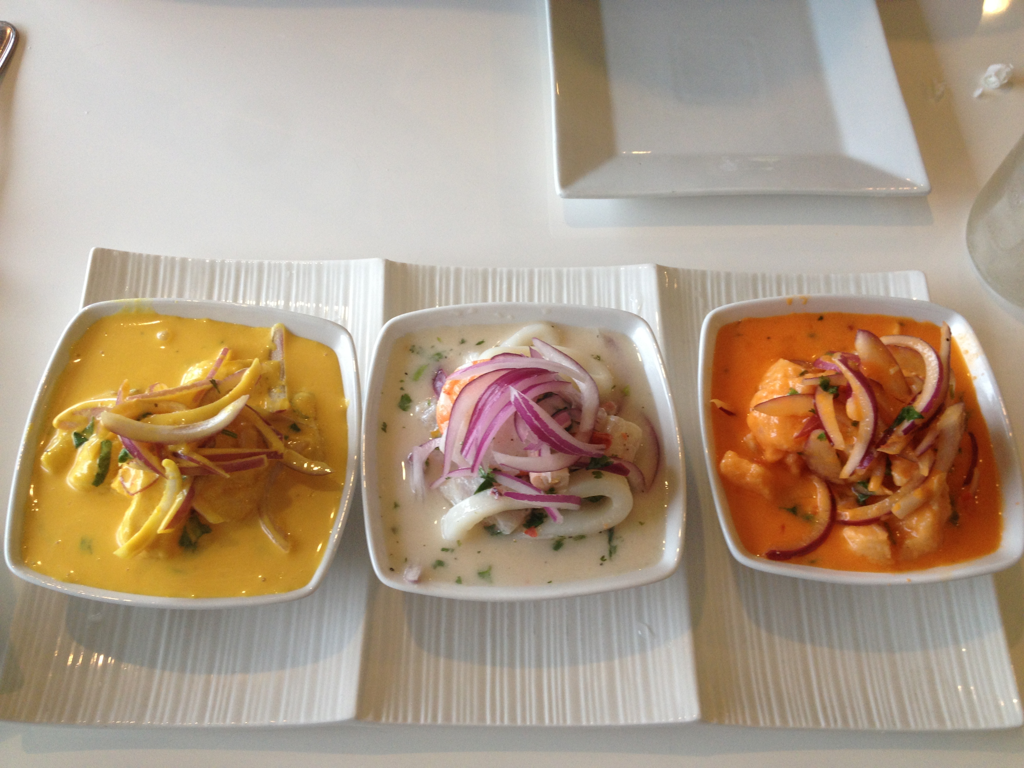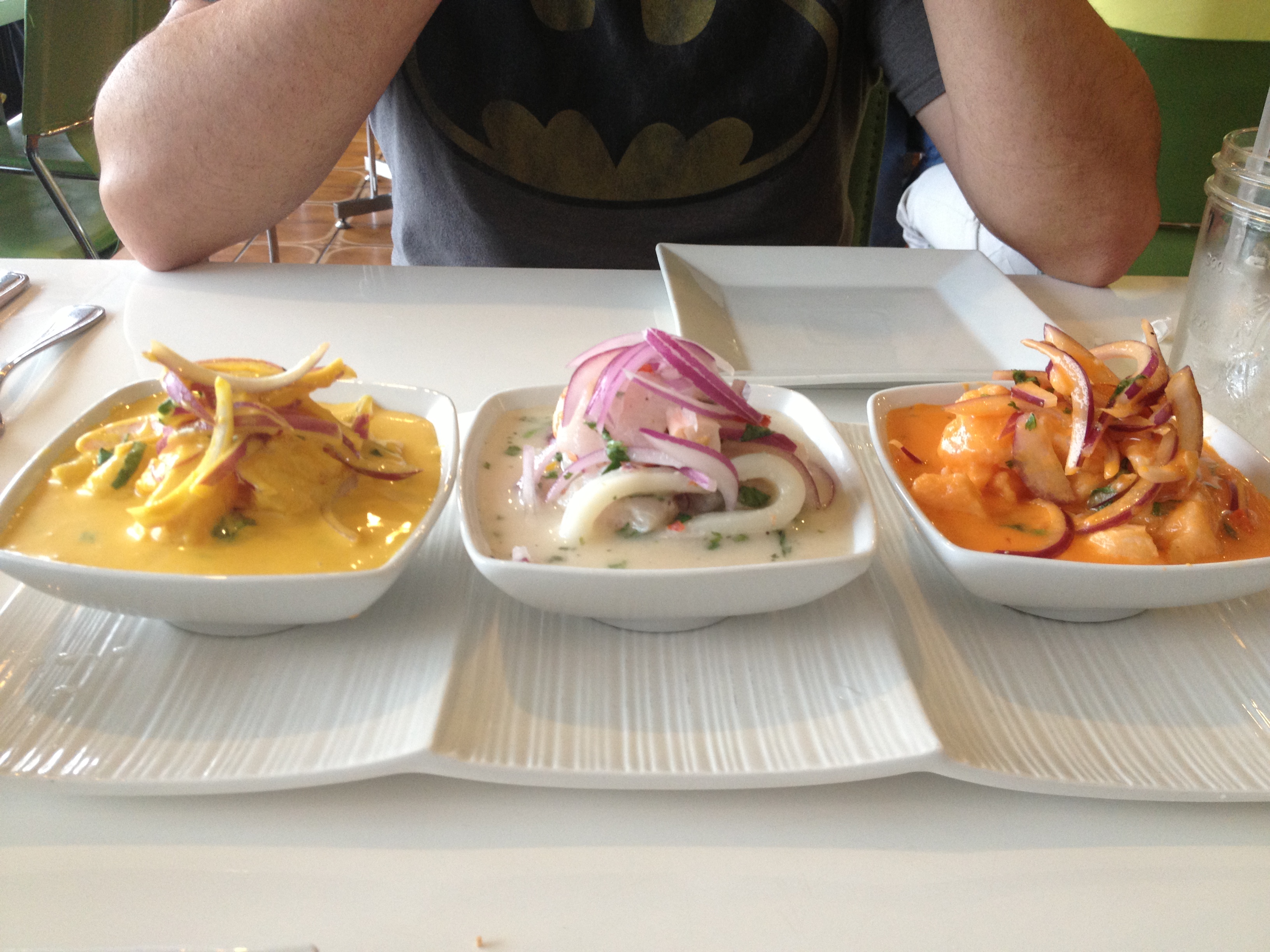 Looking at the menu there were tons of different things to try, but that day I went with their three-flavor ceviche sampler.